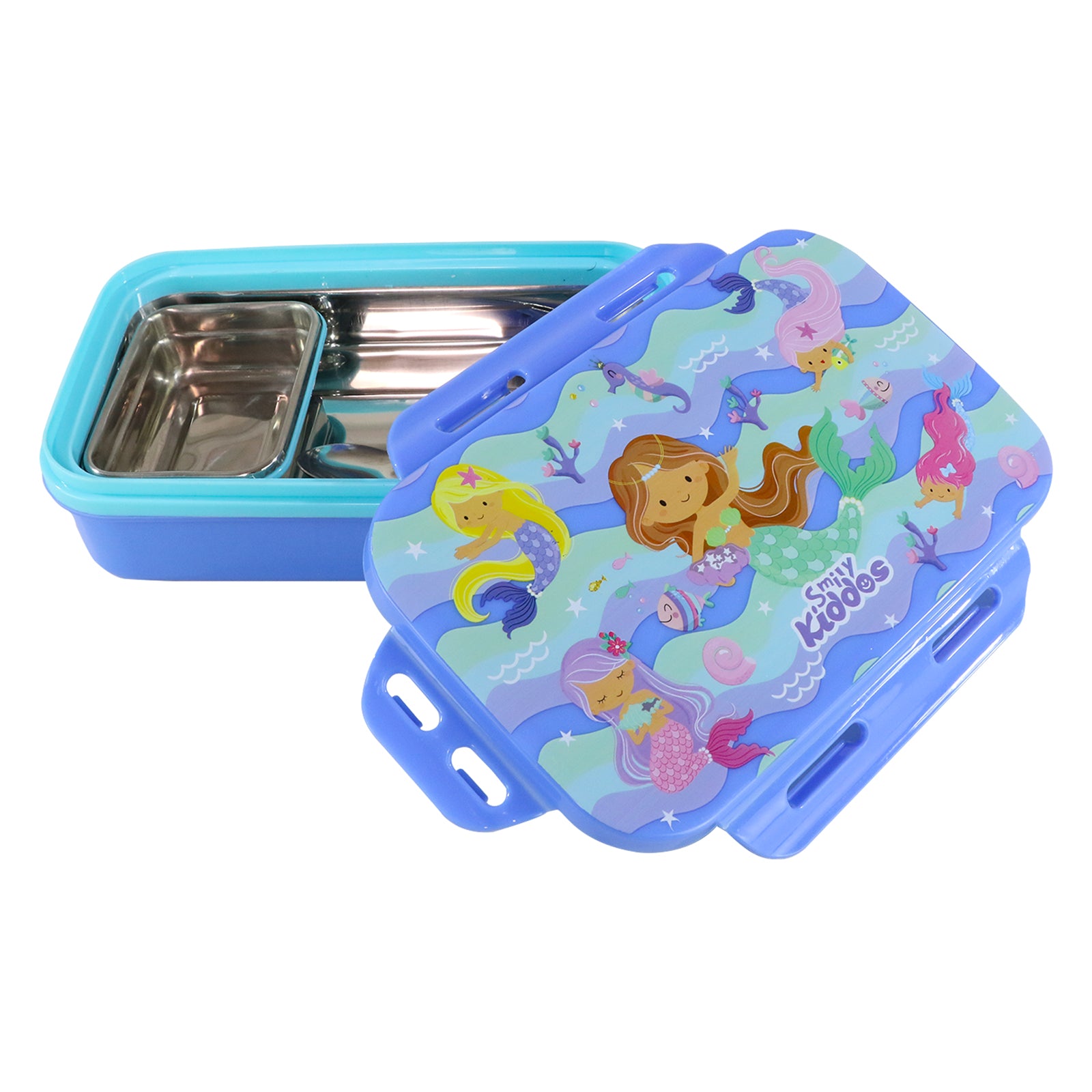 Smily Kiddos Small Brunch Lunch Box – Magical Mermaid Theme | Stainless Steel Food Box for Kids – Ocean Adventure Design